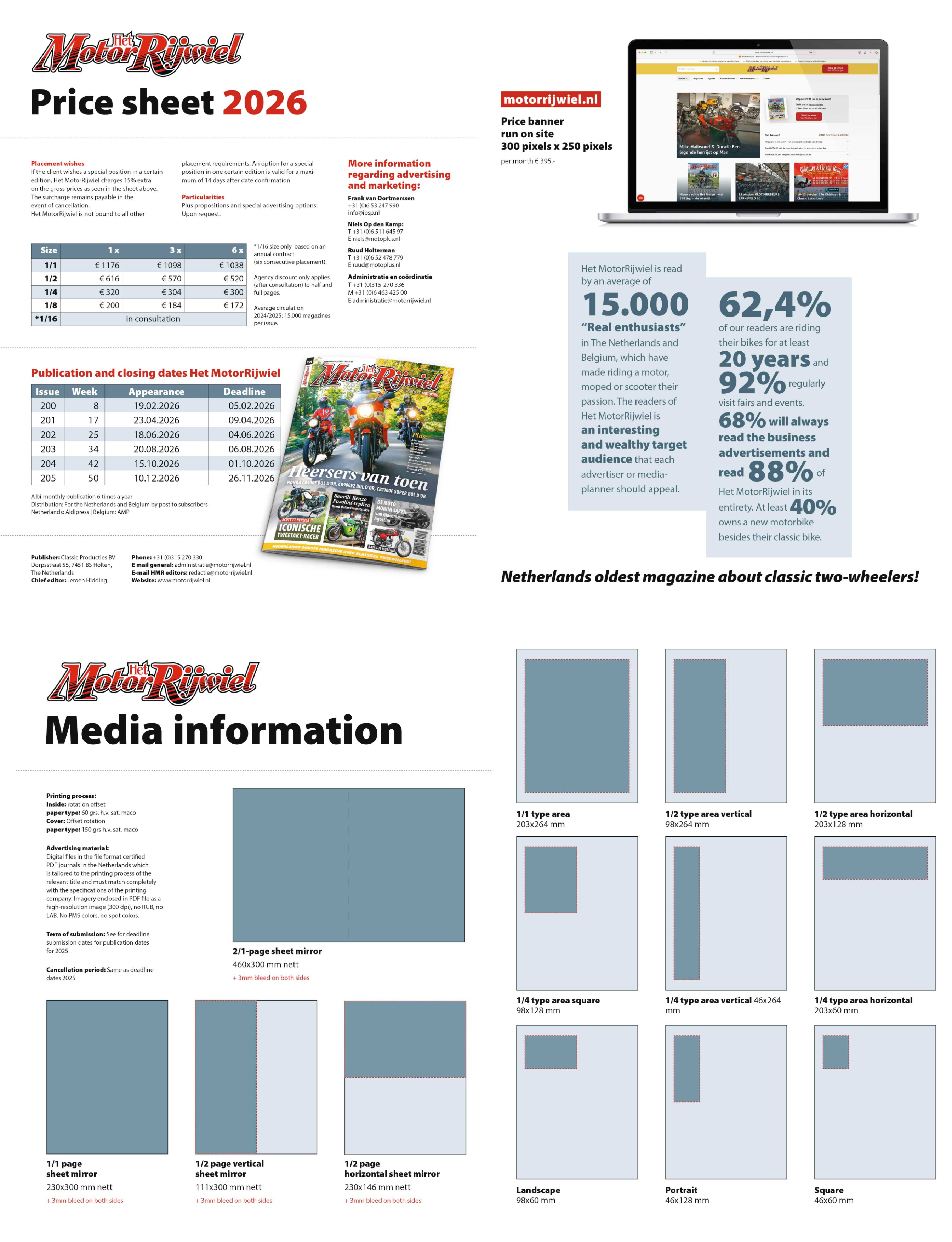 Activiteiten promoten via het 100 pagina's tellende blad is door zijn brede bereik zeer zinvol. De advertentietarieven in het blad en/of on line zijn de scherpste in de hele Benelux. Via een aparte TAB op deze pagina vind je alle basis media informatie.